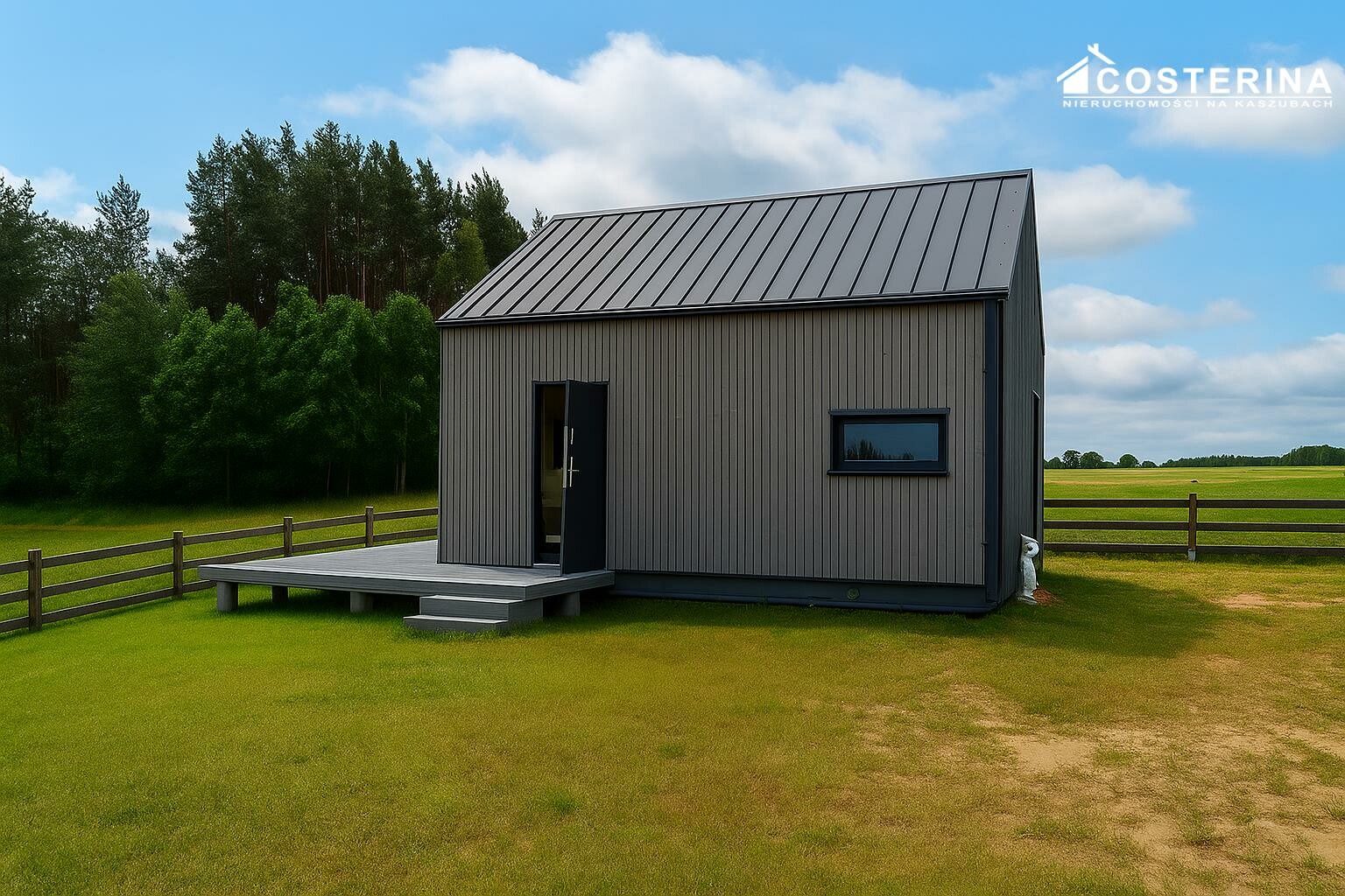 OPIS OFERTY Nowy dom rekreacyjny typu "stodoła" z przeszklonym frontem i dużym tarasem, położony w samym sercu Kaszub, na uboczu wsi Borzestowska Huta, zaledwie 500 metrów od linii brzegowej Jeziora Raduńskiego. To idealna propozycja zarówno do prywatnego wypoczynku, jak i jako inwestycja pod wynajem. Dom zachwyca nowoczesną i minimalistyczną bryłą, wykonany został w technologii szkieletowej z drewna klejonego. Przestronny, jasny salon z dużym przeszkleniem i wyjściem na taras tworzy komfortową przestrzeń dzienną. Wnętrze obejmuje także aneks kuchenny (wyposażony), łazienkę z prysznicem oraz antresolę przygotowaną pod sypialnię. Zainstalowana klimatyzacja podnosi komfort użytkowania. Do wykończenia pozostały jedynie schody prowadzące na antresolę. Działka o powierzchni 1220 m² jest ogrodzona, zapewnia prywatność i daje możliwości dalszego zagospodarowania.