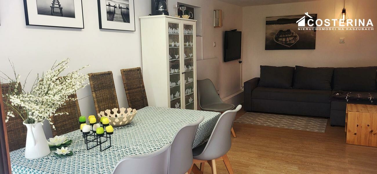 Nie każdy szuka dużego domu i dużej działki. Coraz więcej osób szuka po prostu swojego miejsca nad jeziorem na Kaszubach. Ten domek w Gołubiu to właśnie taka nieruchomość murowany budynek, widok na Jezioro Dąbrowskie, taras i zagospodarowana działka, czyli gotowe miejsce do wypoczynku.